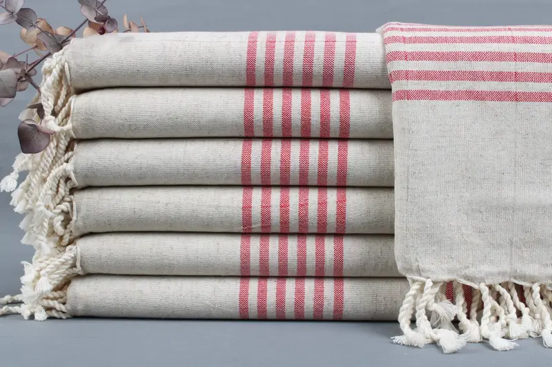 Organic Turkish cotton towels, renowned for their durability and absorbency, ensure efficient moisture management and comfort. Characterized by precise dimensions of 40x71 inches (100x180 centimeters) and a weight range of 425-475 grams, these towels exhibit minor weaving tolerances of up to ± 2 inches (5 centimeters). Resulting in personalized Turkish towels, these items allow customization with embroidered letters, names, or logos in various fonts and colors, placed typically at the bottom middle of the towel. Shipping policies include free i...