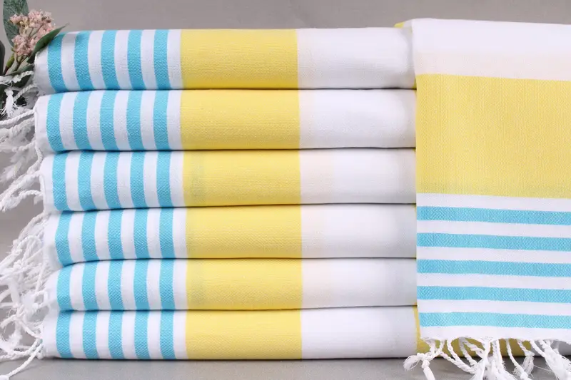 Each hand towel and blanket in the offering, including the monogrammed wedding dish towels, is woven from organic Turkish cotton, ensuring durability and softness. Resulting in an absorbent material, the towels are recommended to be washed before first use to enhance texture, with subsequent washes increasing softness. The towels measure 24x40 inches or 60x100 centimeters, weighing 100 grams, with a tolerance of ±2 inches or 5 centimeters due to hand weaving.