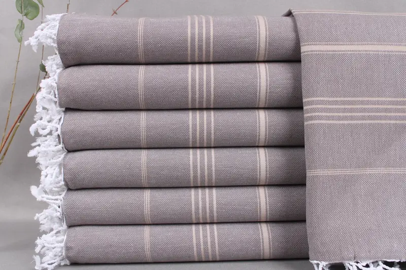 Each monogram beach towel is characterized by its composition of organic Turkish cotton, ensuring durability and high absorbency. The towels are 40x71 inches or 100x180 centimeters, with a weight of 265 grams. Their size may vary by ±2 inches (5cm) due to the hand-weaving process.