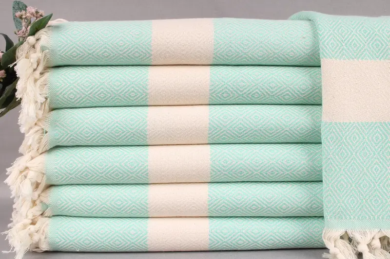 Organic Turkish Cotton characterizes the dish towel, ensuring both durability and soft absorbency. Each piece, resulting in a weight of 115 grams, is meticulously hand-woven on looms to a dimension of 20x36 inches or 50x90 centimeters. The hand-weaving process introduces a tolerance of ± 2 inches or 5 centimeters.