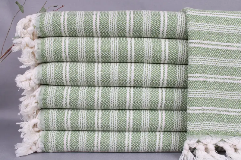 Organic Turkish cotton ensures superior quality and softness, making these towels highly absorbent and durable for extensive use. Each towel is characterized by its meticulous hand-weaving, resulting in dimensions of 18x32 inches or 45x80 centimeters with a weight of 120 grams. Tolerable size variations of ±2 inches (±5 cm) result from the hand-weaving process.