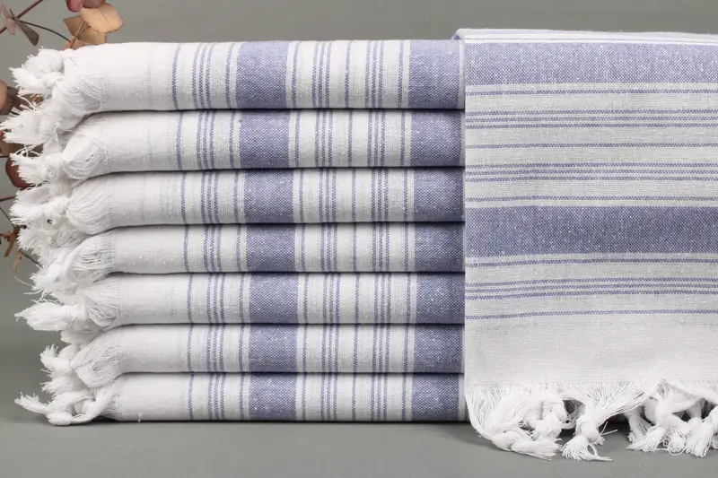 Absorbency is ensured by the use of Organic Turkish Cotton, resulting in high-quality, handwoven products. Each towel weighs between 425-475 grams and measures 40x70 inches (100x180 centimeters), with a tolerance of ± 2 inches (5cm) due to hand-weaving. Each listing features a personalized option with embroidery or name, ensuring customization.