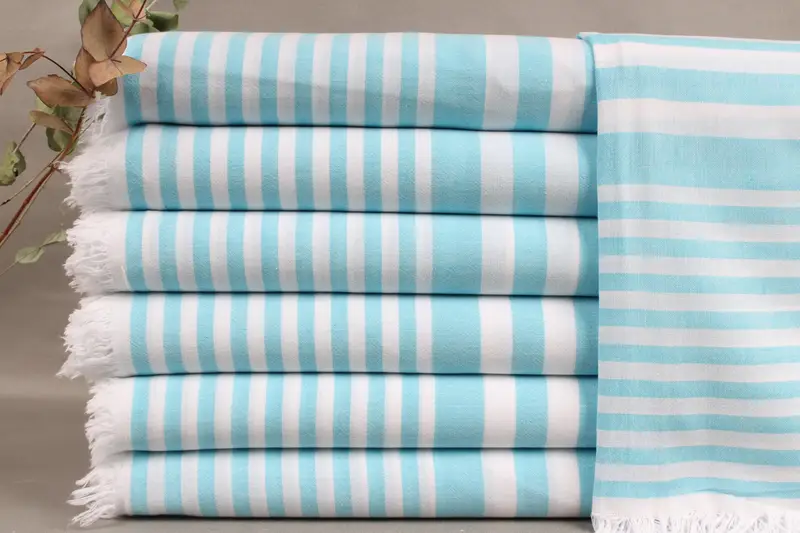 Each product is woven from organic Turkish cotton, ensuring superior absorbency and quality. Resulting in towels that measure 36x68 inches or 90x172 centimeters, each weighing approximately 174 grams with tolerances up to ± 2 inches or 5 centimeters due to hand-weaving. Characterized by precision, personalization options allow for embroidered letters, names, or logos with specified font, color, and placement.