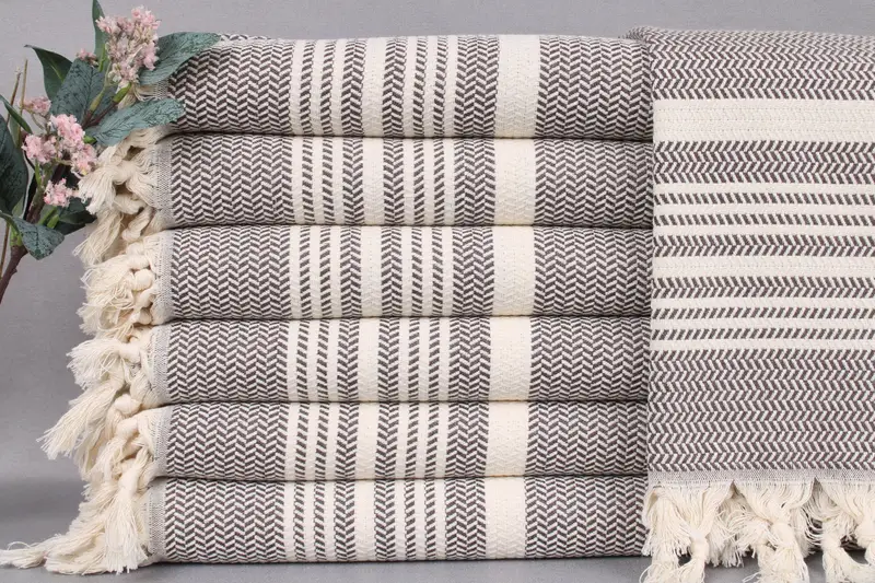 Our towels are meticulously woven from organic Turkish cotton, ensuring durability and soft texture. The 18x40 inches (45x100 centimeters) towels, weighing 112 grams, are characterized by hand-weaving tolerances of ± 2 inches or 5 centimeters. Each piece, whether for beach or kitchen use, can be personalized through embroidery.