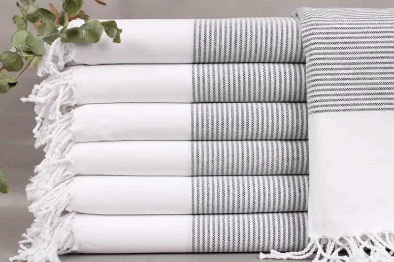 Organic Turkish cotton characterizes the towels, ensuring high absorbency and durability. Resulting in 36x71 inches (90x180 cm) dimensions with a tolerance of ±2′/5 cm, these towels weigh 400 grams. Each listing includes one item, with pre-shrunk options available upon request.