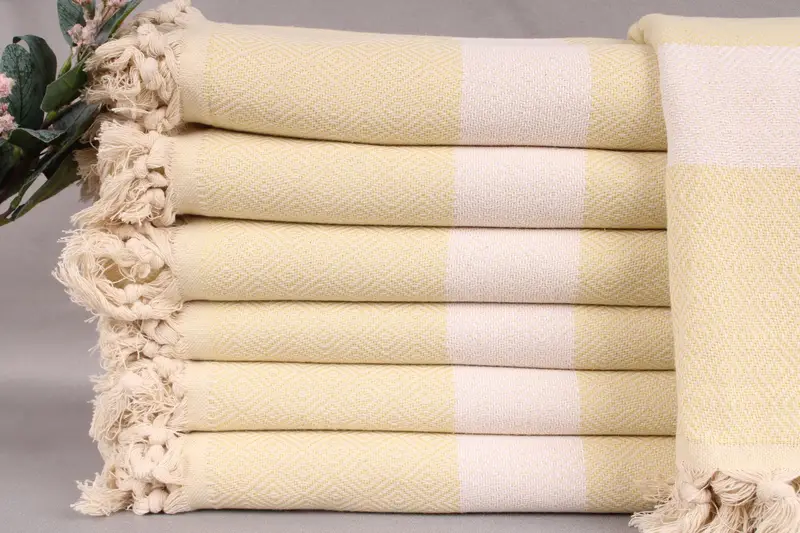 The towels are woven from organic Turkish cotton, characterized by high absorbency and durability. Measuring 40x67 inches or 100x170 centimeters, each piece weighs 320 grams and is handwoven with a tolerance of ±2 inches or 5 centimeters. Customization options include personalizing towels with letters, names, or logos, with specific placement and font options provided. Free worldwide shipping is offered on orders over 35 USD, delivered via FedEx or DHL Express within 2-5 business days. Pre-shrunk Turkish towels should be washed before first use...