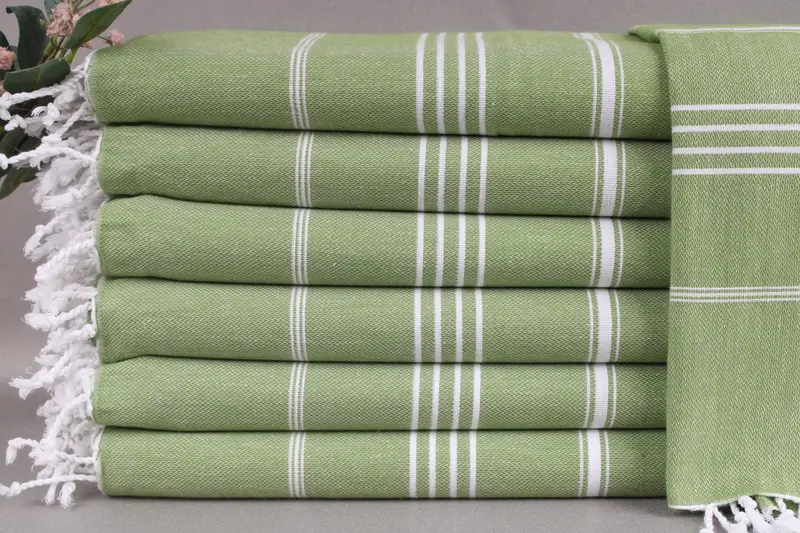 Each product is woven from organic Turkish cotton on looms, ensuring a soft texture and enhanced absorbency. Resulting in towels that become softer with each wash, these items are suitable for various applications, from beach use to spa treatments. Characterized by dimensions of 40x71 inches or 100x180 centimeters, they weigh 265 grams with a hand-weaving tolerance of ± 2 inches or 5 centimeters.