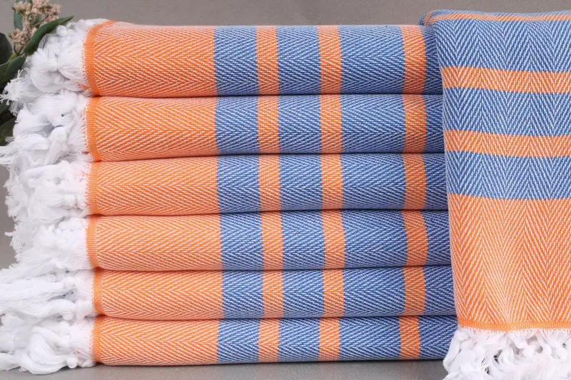 Hand-woven from organic Turkish cotton, these towels exhibit excellent absorbency and durability. Resulting in a soft texture, they are ideal for various applications including beach, bath, and picnic. Measuring 36x67 inches or 90x170 centimeters, these towels weigh 380 grams, with a weaving tolerance of ±2" or 5 centimeters.