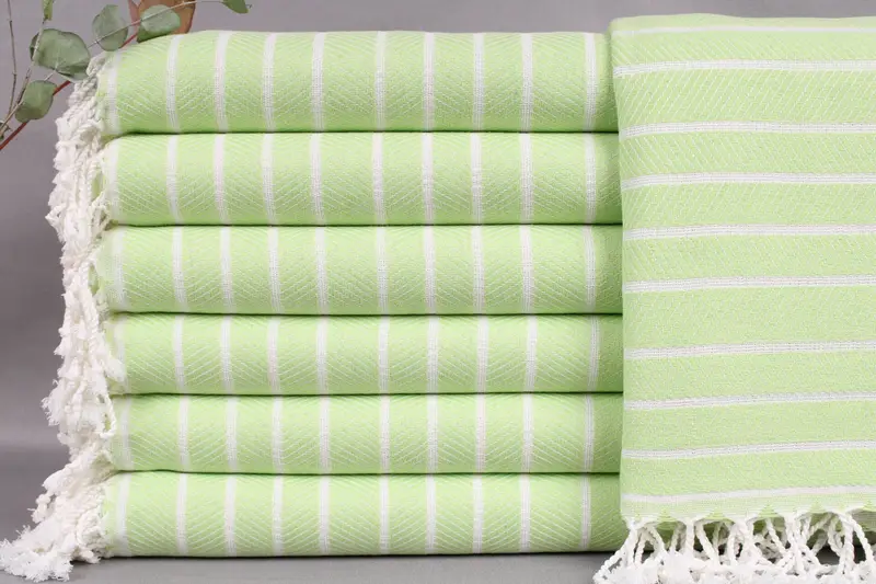 Characterized by a fiber composition of organic Turkish cotton, the towels are renowned for their exceptional absorbency. Ensuring a comfortable grip and soft texture, the towels measure 40x71 inches or 100x180 centimeters and weigh 360 grams. Resulting in a weaving tolerance of ±2 inches or 5 centimeters, they are meticulously handmade on looms.