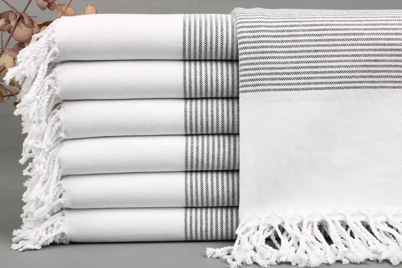 Each towel, blanket, or hand towel is woven from organic Turkish cotton on looms, ensuring high-quality and durability. Characterized by absorbency and softness, they are ideal for various uses including bath towels and beach blankets. Dimensions for each item are 40x70 inches or 100x180 centimeters, weighing between 425-475 grams, with a hand-weaving tolerance of ±2 inches or 5 centimeters.