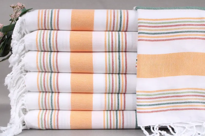 Crafted from organic Turkish cotton, the towels are characterized by their high absorbency and durability, ensuring long-lasting use. Each towel measures 38x75 inches or 95x190 centimeters and weighs 240 grams, with a weaving tolerance of ± 2 inches or 5 centimeters. This results in consistent quality and slight variations in dimensions.