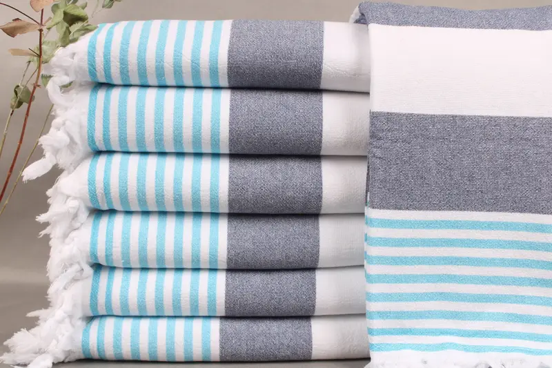 Weaved from organic Turkish cotton, the beach towel ensures excellent absorbency and durability, resulting in a lightweight yet robust textile. Characterized by precise dimensions of 36x67 inches (90x170 centimeters) and a weight of 400 grams, it adheres to hand-weaving tolerances of ± 2 inches or 5 centimeters. The beach towel offers customizable options for embroidery, personalized with specific letters, names, or logos in chosen fonts and colors at recommended placement on the towel.