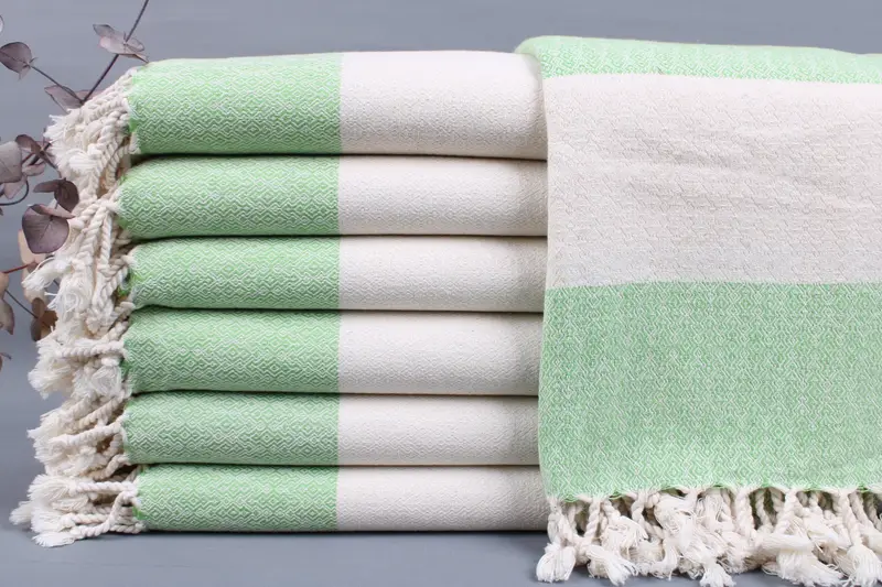 Organic Turkish cotton is characterized by its soft texture and high absorbency, making it an ideal material for various personal and household uses. Each piece, whether a towel, blanket, or hand towel, is meticulously woven on looms, showcasing traditional handcrafting techniques. Resulting in dimensions of 40x70 inches or 100x180 centimeters with a tolerance of ±2 inches or 5 centimeters, these items weigh between 425-475 grams.