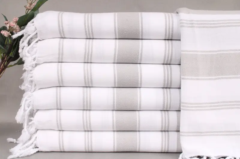Woven from organic Turkish cotton, the towels exhibit superior absorbency and softness, ensuring comfort with each use. Characterized by meticulous hand-weaving on traditional looms, the towels measure 71x40 inches or 180x100 centimeters, with a weight of 310 grams and tolerances of ±2 inches or 5 centimeters. Customization options include embroidery of letters, names, or logos, with standardized font selection and color choices, resulting in unique personalization.