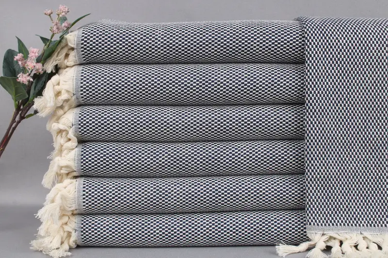 Woven from organic Turkish cotton, the towels ensure high absorbency and durability, characterized by a soft hand-feel. Each towel measures 18x40 inches or 45x100 centimeters, weighing approximately 120 grams, with hand-weaving tolerances of ± 2 inches or 5 centimeters. Customization options include embroidery or personalization with letters, names, or logos.