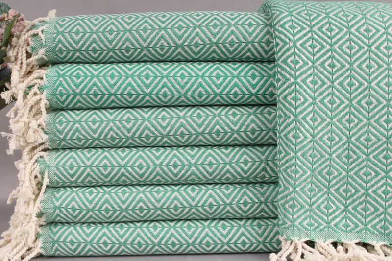 Turkish towels, characterized by their exceptional absorbency, are woven from organic Turkish cotton, ensuring a premium product. Measuring 40x67 inches or 100x170 centimeters, the towels weigh approximately 420 grams. Due to the hand-weaving process, dimensions may vary by ± 2 inches or 5 centimeters.