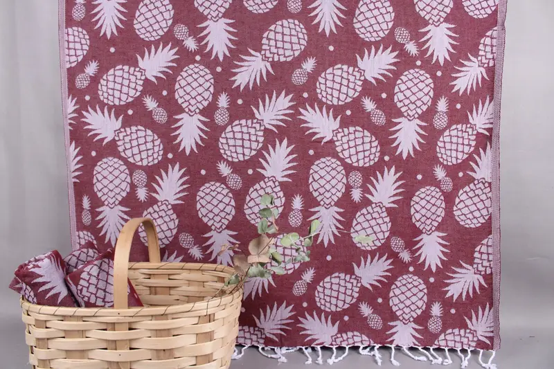 These towels are made from organic Turkish cotton, ensuring durability and high absorbency. Characterized by their 40x71 inches or 100x180 centimeters dimensions, they weigh 350 grams. Hand-weaving results in a tolerance of ± 2" or 5cm.