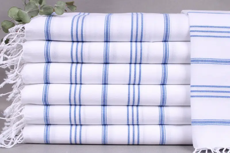 These towels are woven from organic Turkish cotton, ensuring breathability and high absorbency. Characterized by their 24x36 inches or 60x90 centimeters dimensions, these towels weigh 100 grams, maintaining a consistent texture despite weaving tolerances of ± 2 inches or 5 centimeters. Customers can personalize their towels with embroidery or monogramming options, specifying letters, logos, font, and color. Logistics include free shipping for orders over 35 USD, with deliveries from either the US or Turkey. The return policy and FAQs are detail...