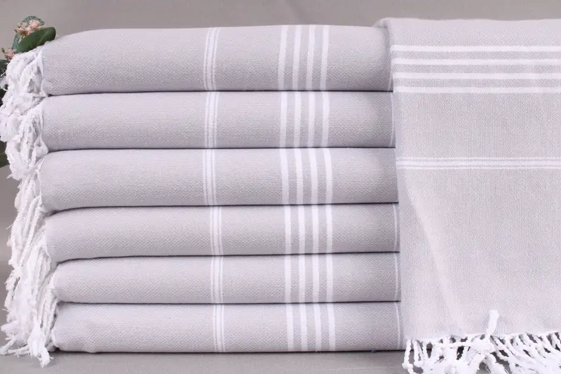 The custom towel is woven from organic Turkish cotton, characterized by its high absorbency and durable fibers, ensuring a soft and fluffy texture. Measuring 40x71 inches (100x180 centimeters) and weighing 290 grams, the towel is handmade with a tolerance of ± 2" (5 centimeters). This allows for slight variations due to the hand-weaving process, resulting in a unique finish for each piece.