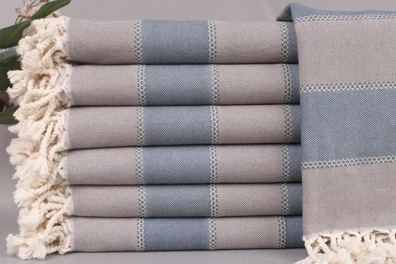 Each listing includes Turkish towels, blankets, or hand towels woven from organic Turkish cotton on looms, ensuring a high-quality handmade product. Dimensions are 36x65 inches or 90x165 centimeters, with a tolerance of ±2 inches or 5 centimeters due to weaving. The weight is specified at 300 grams per item, characterized by a durable yet comfortable texture.