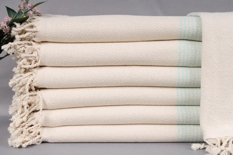 Constructed from organic Turkish cotton, these towels ensure high absorbency and durability. Resulting in a luxurious hand-feel, they are woven on looms, providing a unique tactile experience. Measuring 40x71 inches or 100x180 centimeters, each towel weighs 450 grams. Size tolerances allow for variations of ±2 inches or 5 centimeters due to the hand-weaving process.