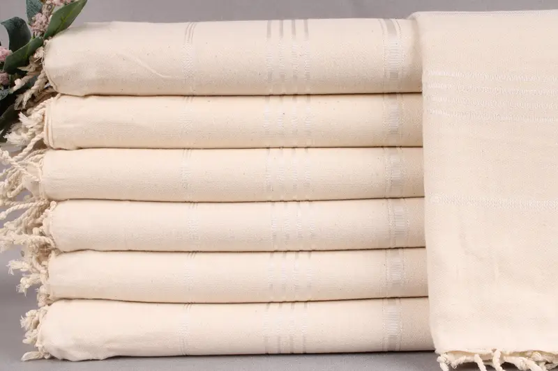 Woven from organic Turkish cotton, each beach towel is characterized by its high absorbency and durability, ensuring a soft texture that improves with each wash. The towels measure 40x71 inches or 100x180 centimeters, weighing 260 grams. A tolerance of ± 2" or 5 cm in size can be expected due to the weaving process.