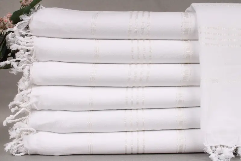 Turkish towels are woven from organic Turkish cotton, ensuring a soft and durable product. Each towel is characterized by its dimensions of 40x71 inches or 100x180 centimeters, resulting in a weight of 300 grams. Weaving tolerances permit a variance of ± 2 inches or 5 centimeters.