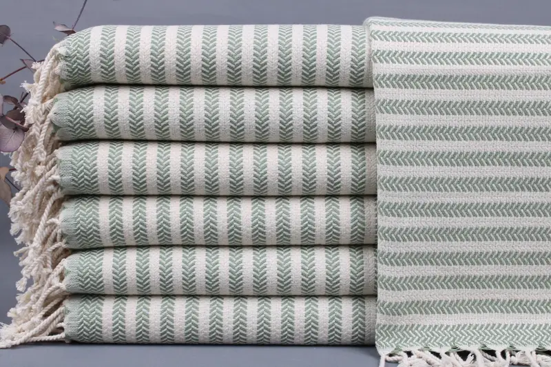 Fiber composition of the towels ensures high absorbency and softness, inherently woven from organic Turkish cotton. Resulting in towels that measure 18x40 inches (45x100 cm) with a weight of 115 grams, the weaving process allows for a tolerance of ± 2 inches or 5 cm. Customization options include embroidery or personalization with letters, names, or logos, with detailed specifications needed for placement and font choice.