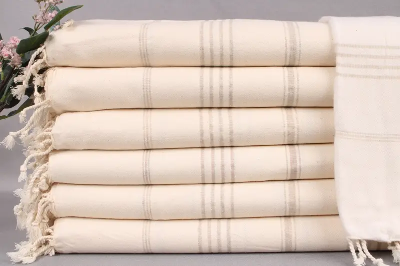 Each listing consists of a single Turkish beach towel, blanket, or hand towel, woven from organic Turkish cotton ensuring breathability and durability. Resulting in a soft texture, the towels are characterized by a size of 40x71 inches or 100x180 centimeters, with a weight of 280 grams. Weaving tolerances of ±2 inches or 5 centimeters can occur.