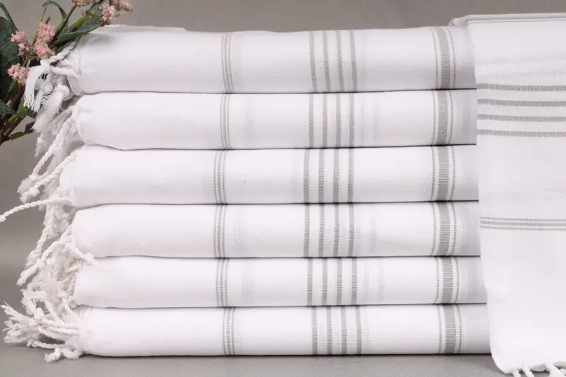 Organic Turkish cotton is utilized, ensuring superior absorbency and quality. Each towel, blanket, or hand towel is crafted via hand-weaving on looms, resulting in dimensions of 40x71 inches or 100x180 centimeters. Tolerances of ± 2 inches or 5 centimeters may occur due to weaving techniques. Weighing 300 grams, the items exhibit durability and comfort.