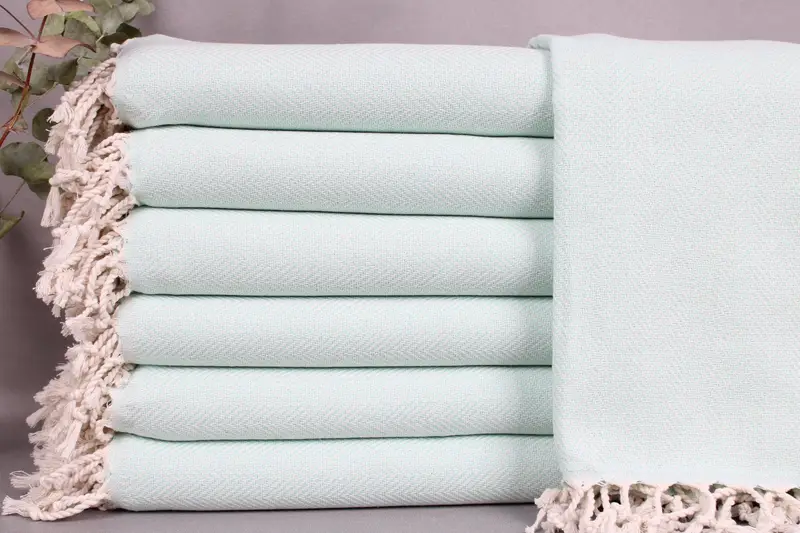 Organic Turkish cotton, characterized by its high absorbency and durability, is utilized in the production of the towels. The towels are woven by hand on looms, resulting in a final product that is finely crafted and of superior quality. The dimensions of each towel are 40x71 inches or 100x180 centimeters, with a weight of 400 grams. Weaving tolerances permit variations of ±2 inches or 5 centimeters.