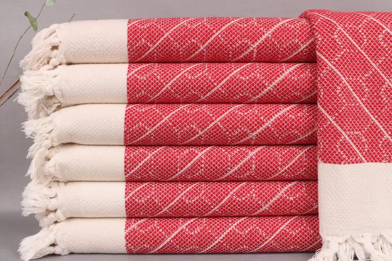Organic Turkish cotton ensures superior absorbency, resulting in a high-quality hand-woven product. Each towel measures 18x36 inches or 45x90 centimeters, weighing approximately 120 grams, with a tolerance of ± 2" or 5 cm due to weaving. Customization through embroidery is available, allowing for personalization with letters, names, or logos, and towels should be washed separately for the first two washes.