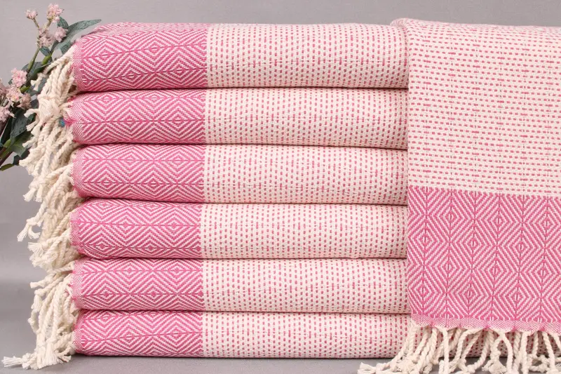 Characterized by its luxurious texture, the Turkish hand towel is composed of organic Turkish cotton fibers, ensuring optimal absorbency and durability. Measuring 18x36 inches or 45x90 centimeters, these towels weigh approximately 122 grams and exhibit a hand-weaving tolerance of up to ± 2 inches or 5 centimeters.