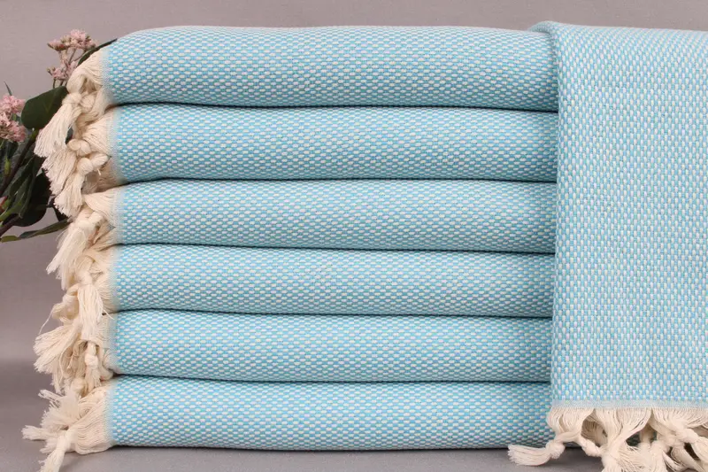 All products are woven from organic Turkish cotton, ensuring both high quality and sustainability. Characterized by their natural absorbency, these towels require washing before first use, resulting in increased softness with each subsequent wash. Dimensioned at 18x40 inches or 45x100 centimeters, these towels weigh 120 grams with a tolerance of ± 2 inches or 5 centimeters due to hand-weaving techniques.