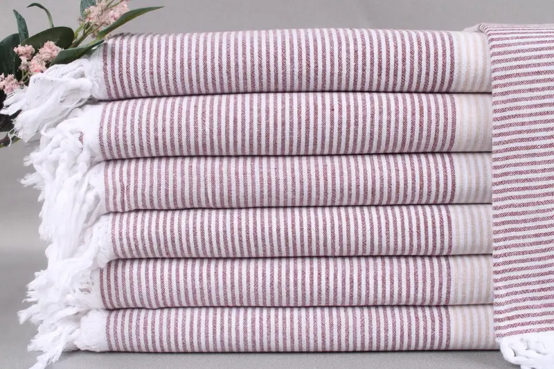 Constructed from 100% organic Turkish cotton, these beach towels are characterized by their superior absorbency and durability, ensuring optimal performance in various settings. Each towel, measuring 40x67 inches or 100x170 centimeters, weighs 280 grams and is handmade with a tolerance of ±2 inches or 5 centimeters. This results in a product that is both lightweight and robust, ideal for diverse uses.