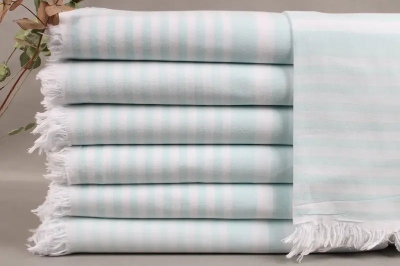 Weaved entirely from organic Turkish cotton, the Turkish bath towels exhibit superior absorbency and durability. Each towel, blanket, or hand towel undergoes meticulous hand-weaving on traditional looms, resulting in a textured finish. The dimensions for each piece are 40x63 inches or 100x160 centimeters, with a permissible tolerance of ±2 inches or 5 centimeters due to the manual weaving process. Weighing in at 200 grams, these items balance softness and weight effectively.