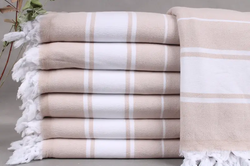Woven from organic Turkish cotton, these towels, hand towels, and blankets offer high absorbency and durability. Resulting in a weight of 450 grams, they are hand-woven on looms with dimensions of 36x63 inches or 90x160 centimeters. Tolerance in size is ±2 inches or 5 centimeters due to the hand-weaving process.