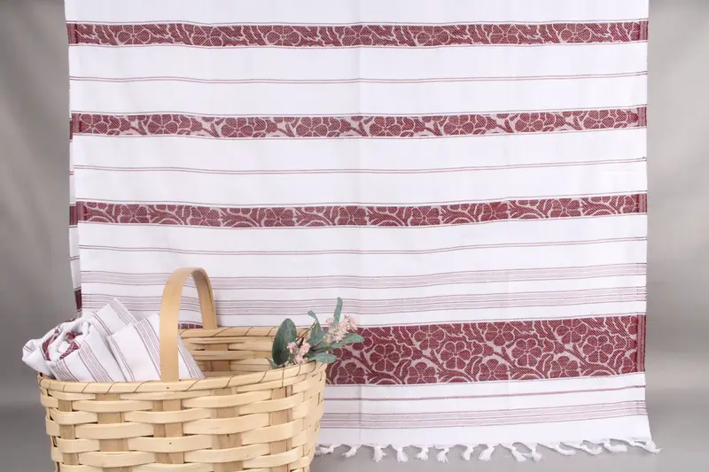 Woven from organic Turkish cotton, the towel ensures durability and natural softness, characterized by its absorbency and high-quality material. Resulting in a dimension of 40x71 inches or 100x180 centimeters, with a weight of 300 grams, the product allows for ± 2 inches or 5 centimeters of tolerance in size due to the hand-weaving process. Hand-crafted on looms, each towel can be personalized with embroidery or names, ensuring customization based on specific customer requests.