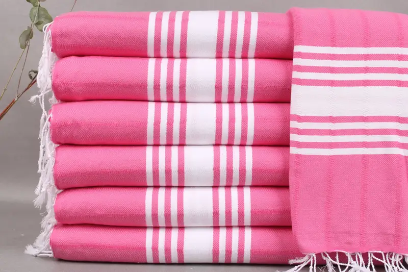 Characterized by a woven construction from organic Turkish cotton, these towels ensure superior absorbency and durability. Dimensions specified are 40x71 inches or 100x180 centimeters, resulting in a lightweight of 380 grams. Weaving tolerances can be ±2 inches or 5 centimeters.
