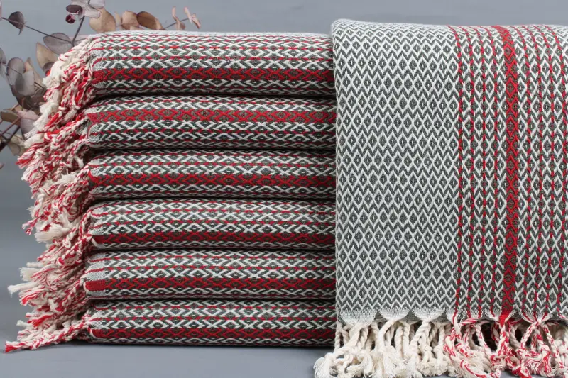 Characterized by their high-quality organic Turkish cotton composition, the towels are ensured to be highly absorbent and durable, enhancing user comfort. Resulting in dimensions of 40x70 inches or 100x180 centimeters, with a tolerance of ±2 inches or 5 centimeters due to hand weaving, the towels weigh between 425 and 475 grams. Each product offers customization through embroidery or imprinting of letters, names, or logos with specified font, color, and placement options.