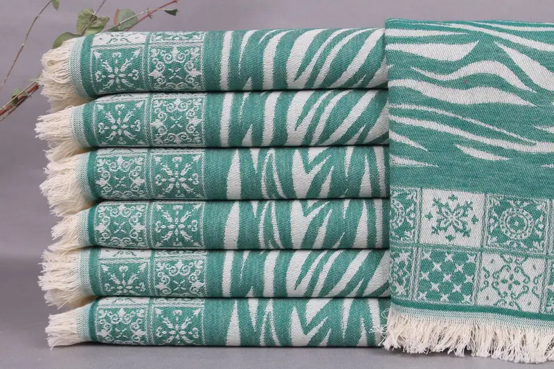 Turkish towels are woven from organic Turkish cotton, ensuring a high-quality, natural fiber composition. Characterized by their absorbency, these towels provide efficient moisture wicking, making them suitable for multiple uses including beach, bath, and kitchen.