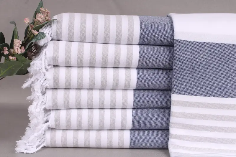The Turkish Beach Towels are crafted from organic Turkish cotton, ensuring superior absorbency and texture. Characterized by dimensions of 40x71 inches (100x180 centimeters), these towels weigh approximately 280 grams and exhibit a hand-weaving tolerance of ± 2 inches (5 centimeters). Resulting in slight variations in size post-weaving. The listing also includes options for embroidery customization with personalized letters, names, or logos, as noted by the purchaser.