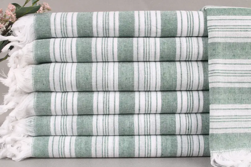 Characterized by its hand-weaving technique, these towels are woven from organic Turkish cotton, ensuring superior absorbency and durability. Each towel measures 40x71 inches or 100x180 centimeters and weighs 124 grams, allowing for ±2 inches or 5cm variance due to the weaving process. Towels can be personalized with embroidery options, including letters, names, or logos, to meet specific gift preferences.