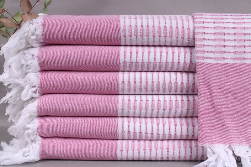 Our product is woven from organic Turkish cotton, ensuring superior absorbency and durability. Resulting in a lightweight yet robust towel, each piece measures 40x71 inches or 100x180 centimeters and weighs 250 grams, with a weaving tolerance of ± 2 inches or 5 centimeters. Each item is handcrafted, allowing for personalization with embroidery or a name.