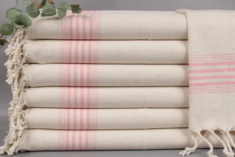 Each towel is made from organic Turkish cotton, ensuring high absorbency and durability. The fiber composition results in soft, breathable, and hypoallergenic properties. Characterized by a standard dimension of 18x36 inches (45x90 cm), these towels weigh approximately 104 grams. Weaving tolerances of ± 2 inches (5 cm) ensure quality consistency.