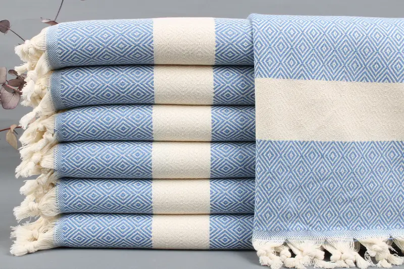 Each item is woven from organic Turkish cotton, ensuring durability and absorbency. The dimensions are 20x36 inches, or 50x90 centimeters, and the weight is 115 grams. Weaving tolerances are approximately ±2 inches or 5 centimeters.