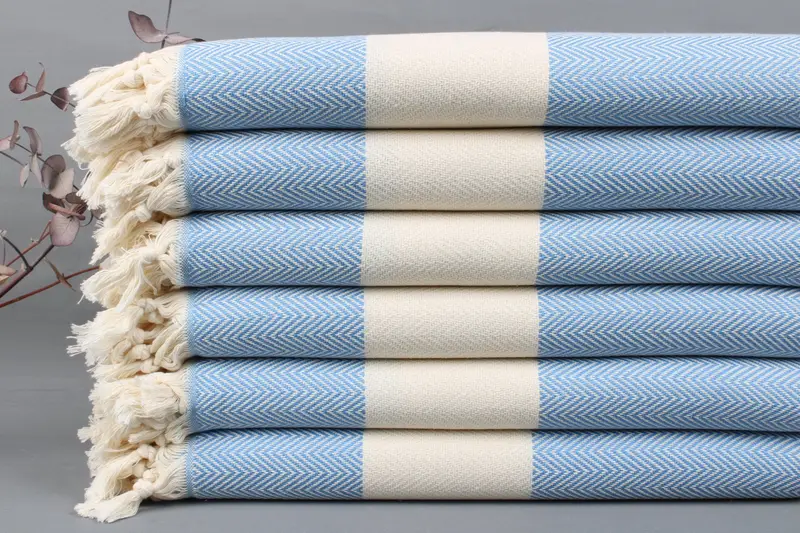 Each towel and blanket in the collection is woven from organic Turkish cotton, ensuring breathability and absorbency. Measuring 40x71 inches or 100x180 centimeters, these items weigh approximately 430 grams, providing a substantial yet lightweight feel. Weaving tolerances allow for variations of ±2 inches or 5 centimeters.