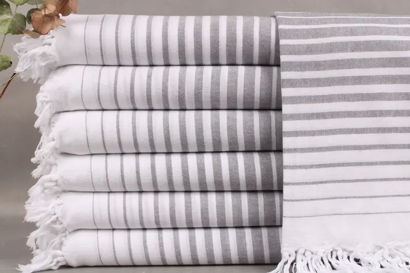 The towels are woven from organic Turkish cotton, characterized by high absorbency and durability. Measuring 36x71 inches or 90x180 centimeters, with a weight of 200 grams, they are handmade on looms ensuring ± 2" or 5cm tolerance in size. Each listing includes one towel, blanket, or hand towel and offers personalization options, such as embroidery or monograms.