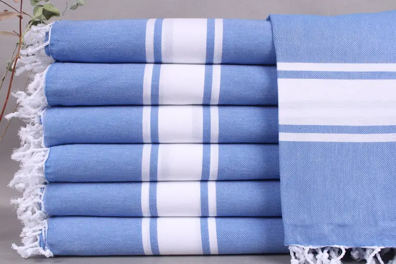 The products are woven from organic Turkish cotton, ensuring durability and superior absorbency. Resulting in a weight of 290 grams, each piece features dimensions of 40x71 inches or 100x180 centimeters with a hand-weaving tolerance of ± 2 inches or 5 centimeters.