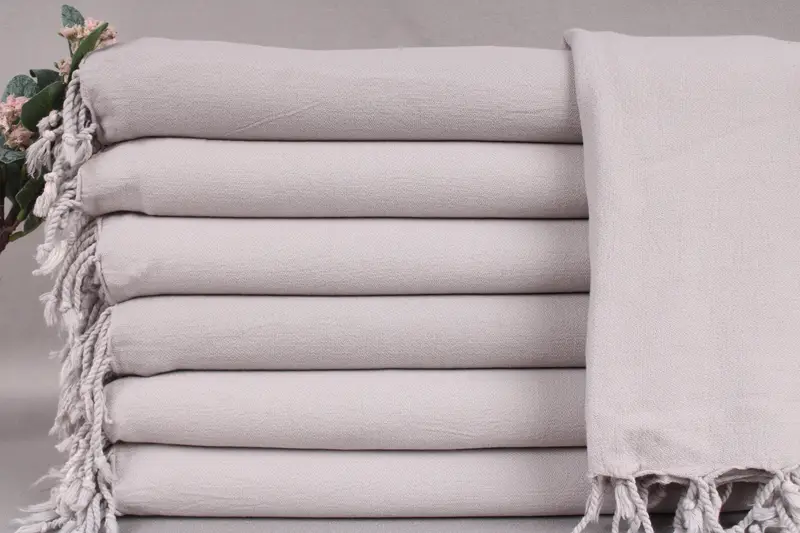 These towels are woven from organic Turkish cotton, characterized by high absorbency and durability. Each towel, blanket, or hand towel is handmade with precision, resulting in a product that is soft and robust. The towels come pre-shrunk, ensuring they maintain their shape and size after washing.